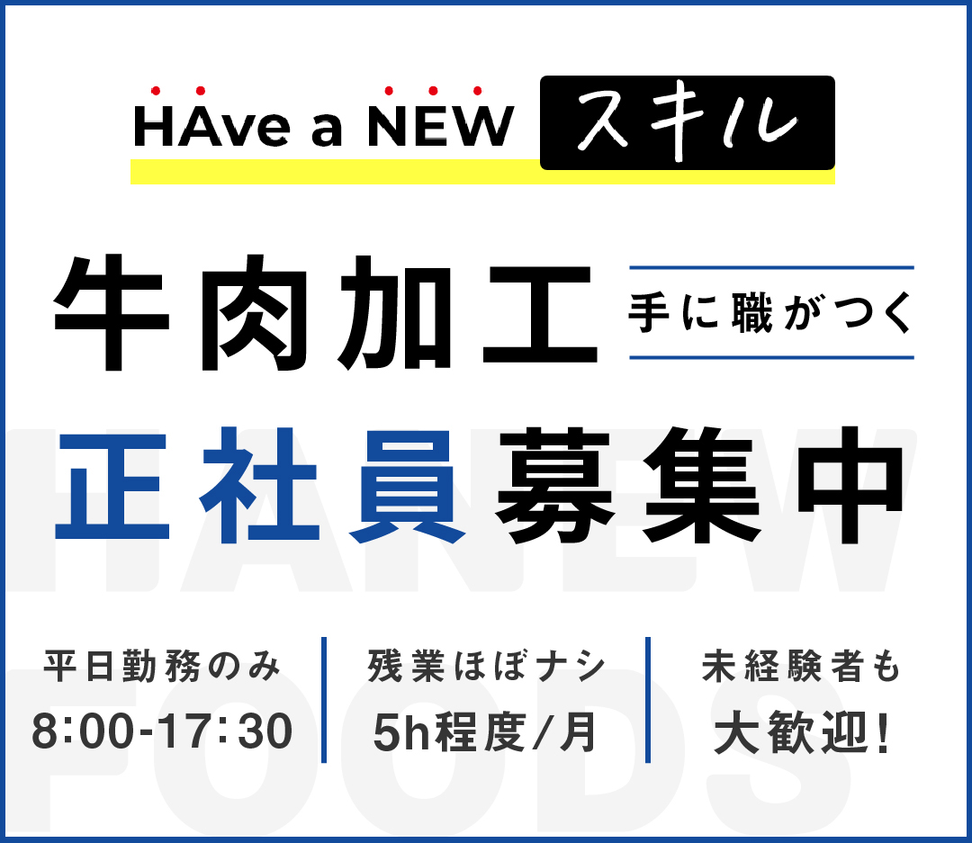 大手食肉企業でこだわりの国産牛のみの取り扱い 牛肉のプロフェッショナルへと成長できる!